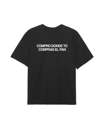 “COMPRO DONDE TÚ COMPRAS EL PAN” camiseta negra y blanca. Edición limitada.